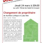 En partenariat avec le ciné bourse de St Junien, en présence des associations : http://www.alerte-medecins-pesticides.fr/ http://limousin.alternatiba.eu/ http://www.generations-futures.fr/ http://www.amisdelaterre.org/ http://www.lesamisdelaconf.org/ http://www.terredeliens.org/limousin http://lne-asso.fr/ http://www.arbre-abeille-javerdat.fr/ Nous vous invitons dans le cadre de la semaine des alternatives aux pesticides à un ciné débat Pesticides et santé, pesticides quelles alternatives ? Ils hypothèquent notre santé, polluent, la terre, l’eau et …