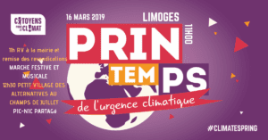– Les associations et organisations qui soutiennent la Marche : 55 citoyens pour Limoges / Agrobio / Alder Climat-Energie / Alternatiba / Amis de la Terre / Amnesty International / Attac 87 / Ardear / Artisans du Monde / Campus à Cultiver / Citoyenne solaire / Confédération Paysanne / Cfdt 87 / Cgt 87 / Cgt Cheminots / Eol 87 / Géosphère / Grands-Parents pour le Climat / La Fabrique Citoyenne / La Grainothèque / L214 / La Maison de l’Architecture / La Nef / Le Pelou / Les Cigales / Limousin Ecologie / Limousin Nature Environnement / Manger bio / Par ici la Bonne Soupe / Réseau pour les Alternatives Forestières / Roosevelt 87 / Résonance Paille / Saint-Junien Environnement / Saveurs Fermières / Sources et Rivières / Syndicat Sud Santé Sociaux 87 / Terre de Liens / Tram-Train / UFC Que Choisir de la Haute vienne / Véli-Vélo / Zero Waste Haute-Vienne …